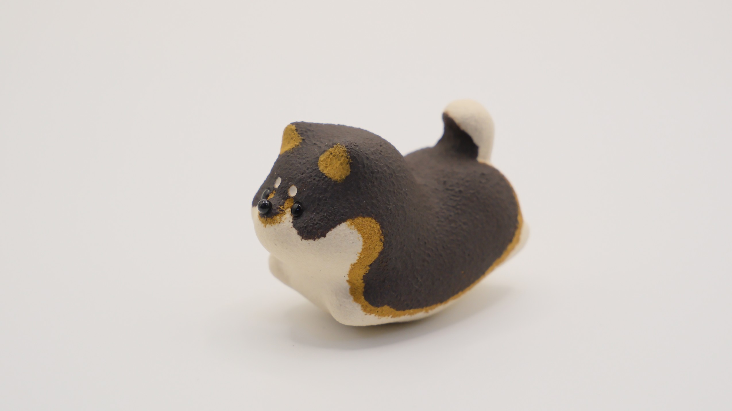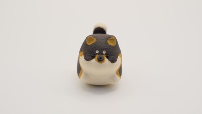 小さな黒柴をモチーフにした陶器の置物です。黒と茶のコントラストが美しく、手作業による表面の風合いが高級感を漂わせます。飾るだけで和やかな雰囲気を作ります。