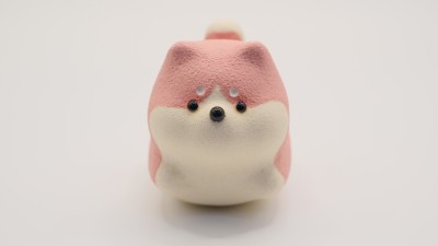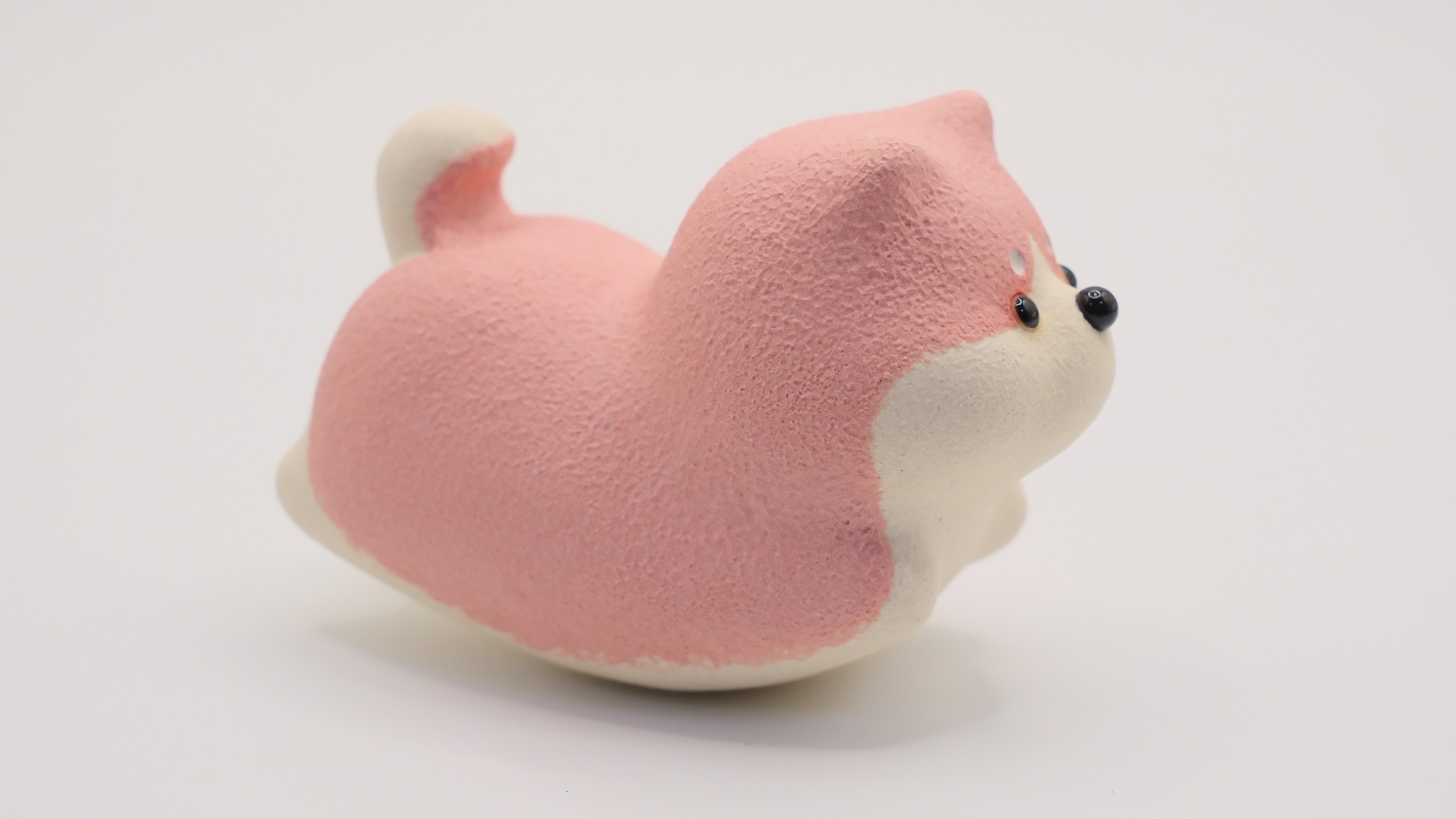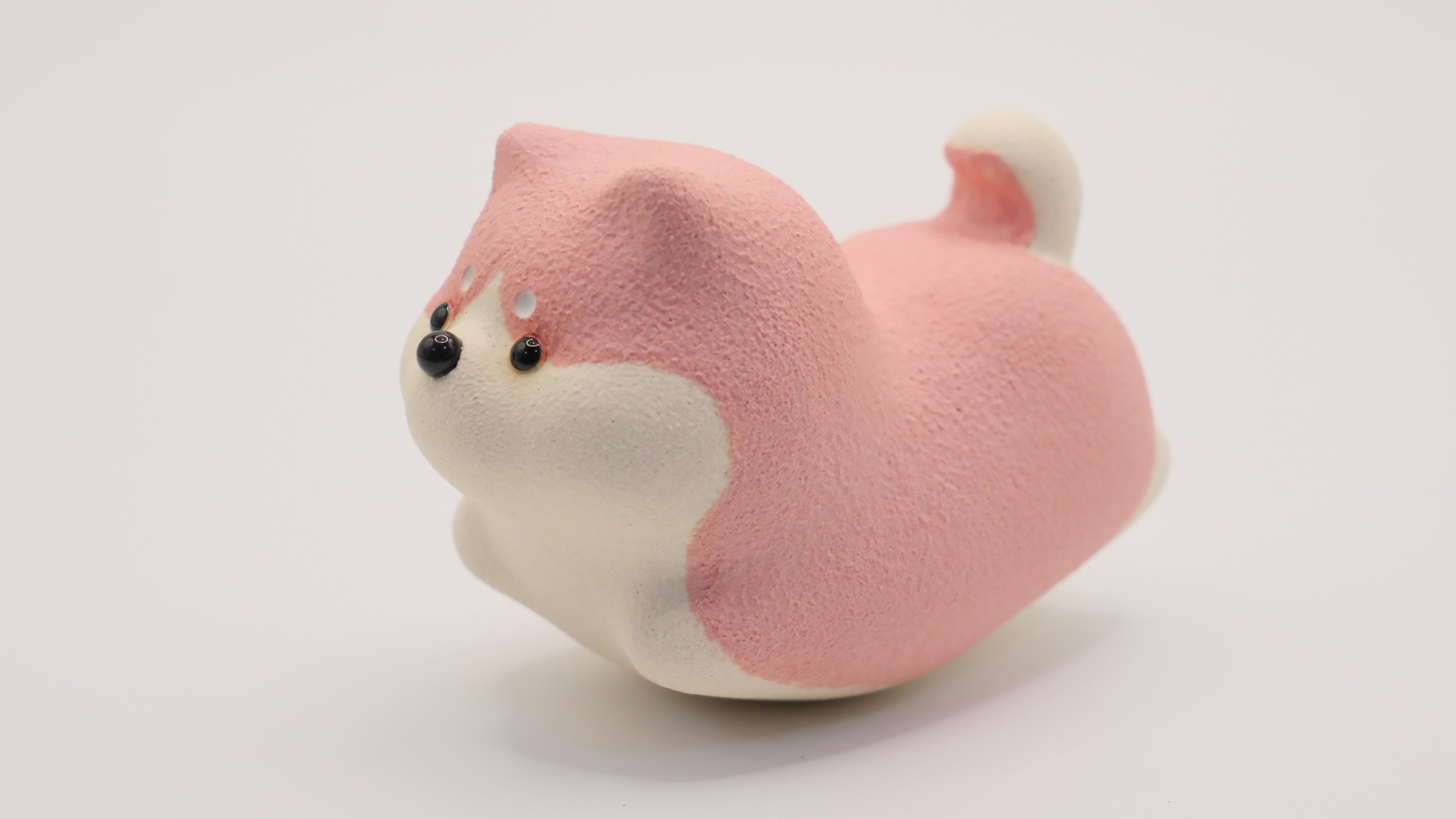 淡いピンク色が可愛らしい陶器の犬の置物です。桃のような柔らかな色合いで、見ているだけで優しい気持ちになります。贈り物にもおすすめの癒し系アイテムです。